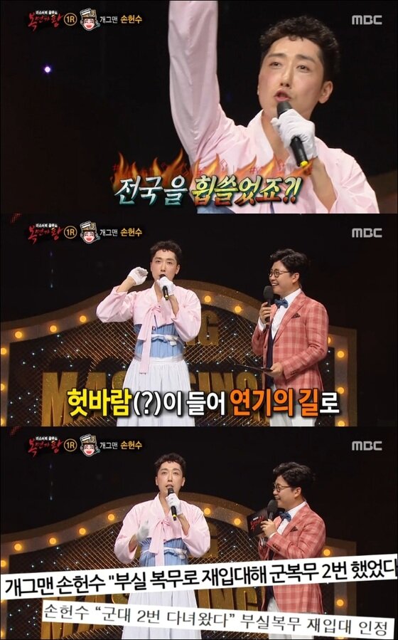 손헌수 신인때 좀 뜨다가, 중간에 군대 사고쳐서.